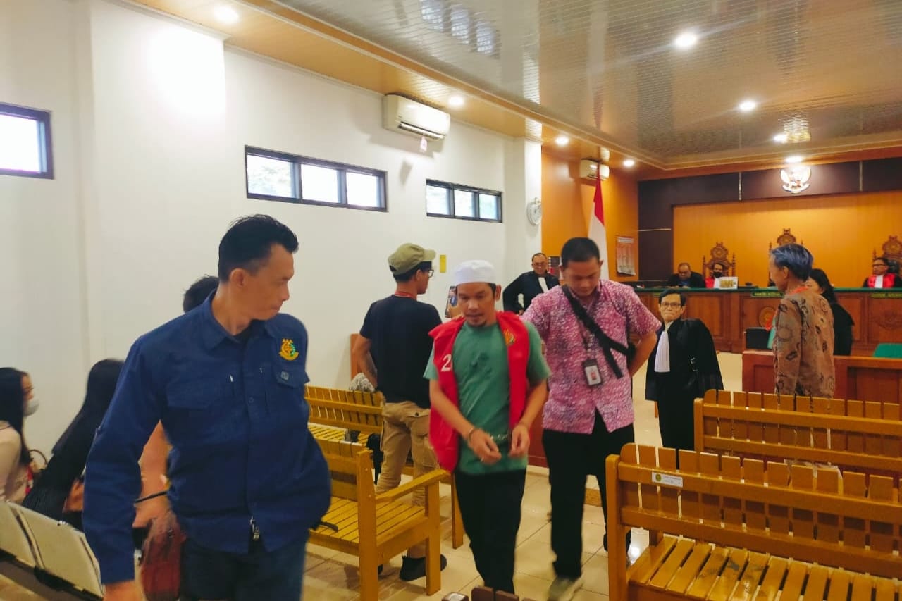 Keterangan Foto : Salihin (Rompi merah) usai mengikuti pembacaan putusan sela di PN Palangka Raya (Foto : PATHUR)