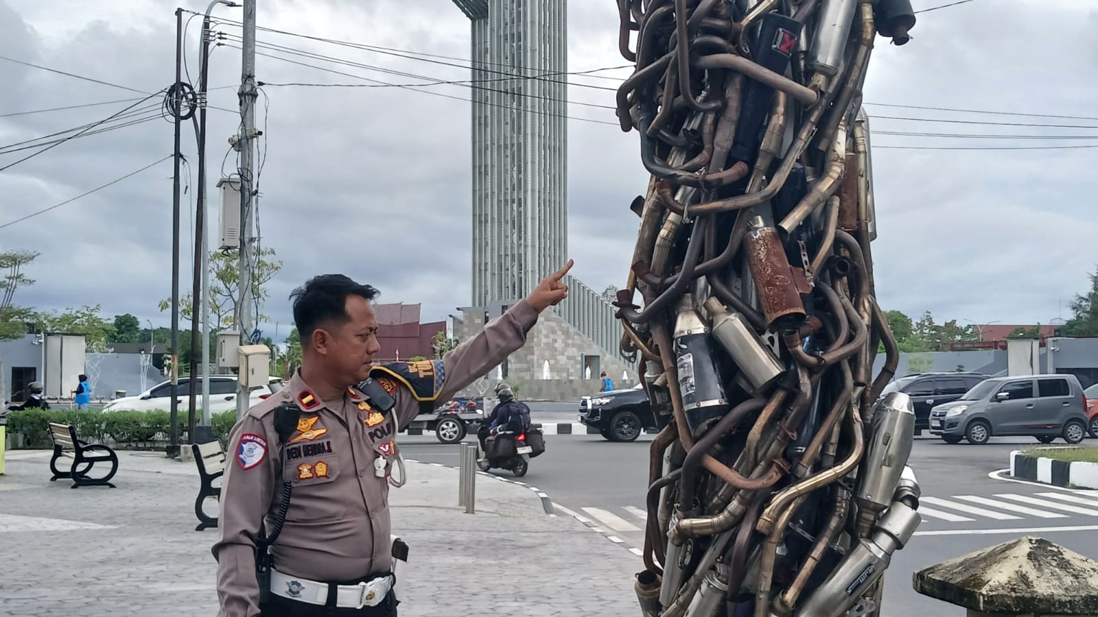 Unik! Knalpot Brong Hasil Razia Disusun Jadi Monumen Pengingat di Kota Cantik Palangka Raya
