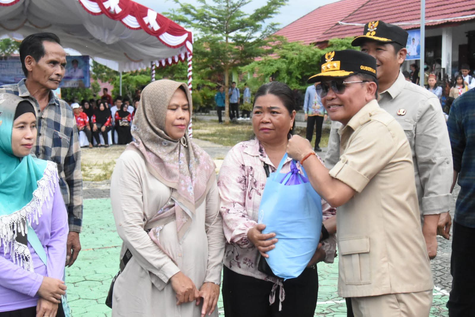 Gubernur Kalteng H. Agustiar Sabran saat menyerahkan Paket Sembako secara simbolis kepada Masyarakat Barito Utara. (Foto: BiroAdpim)