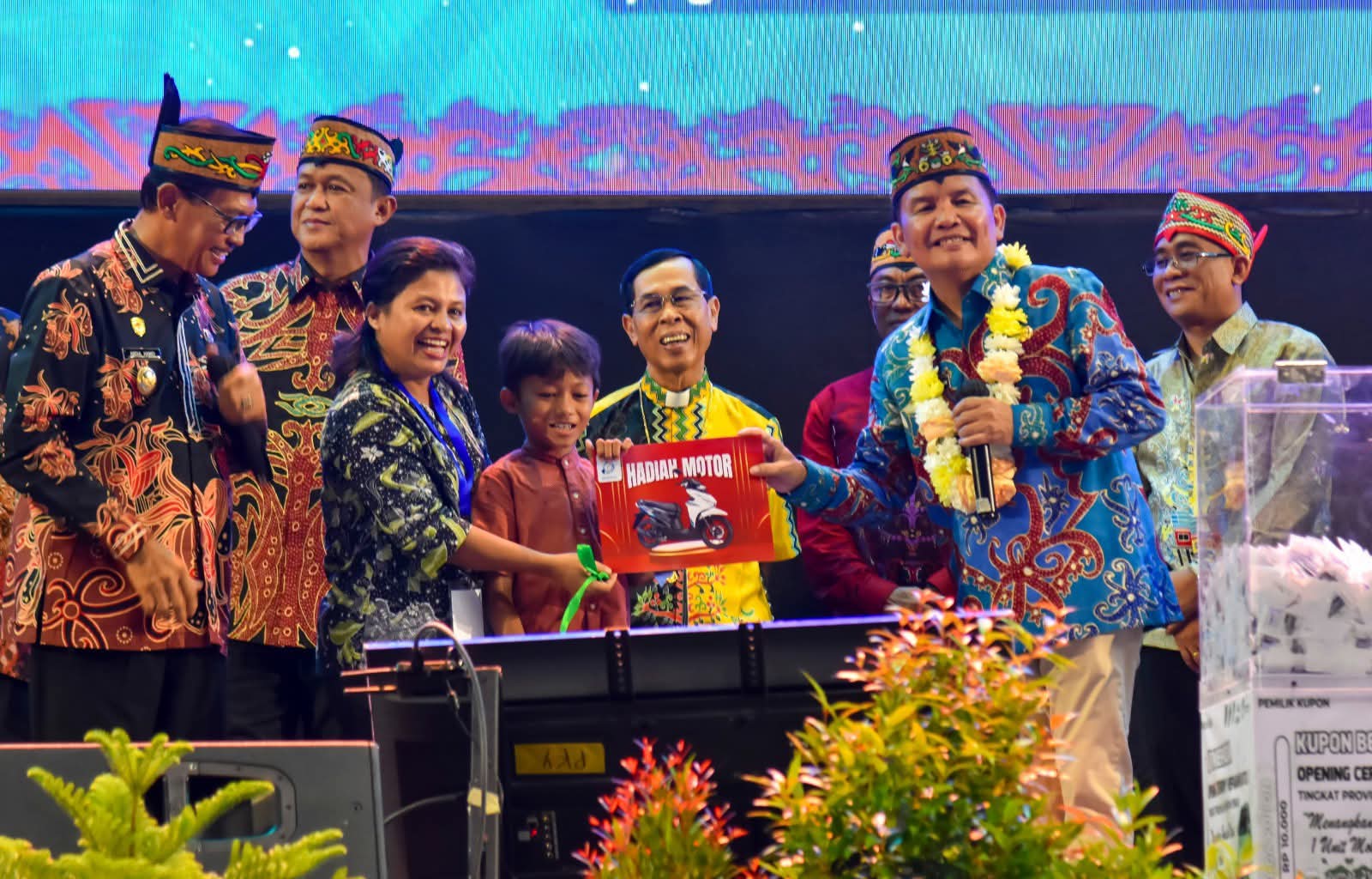 Gubernur Kalteng H. Agustiar Sabran saat menyerahkan hadiah unit motor di pembukaan acara Pesparani Katolik. (Foto: BiroAdpim)
