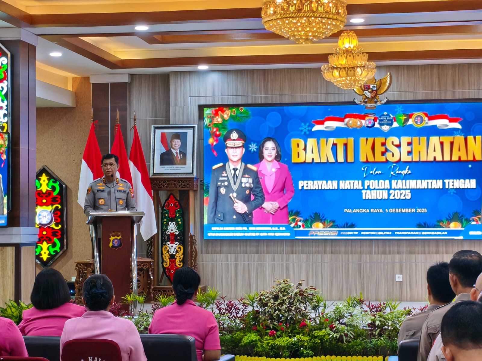 “Hari ini Polda Kalimantan Tengah melaksanakan bakti kesehatan dalam rangka tahapan perayaan Natal bagi anggota-anggota Polda yang beragama Kristiani,” ujar Kapolda.