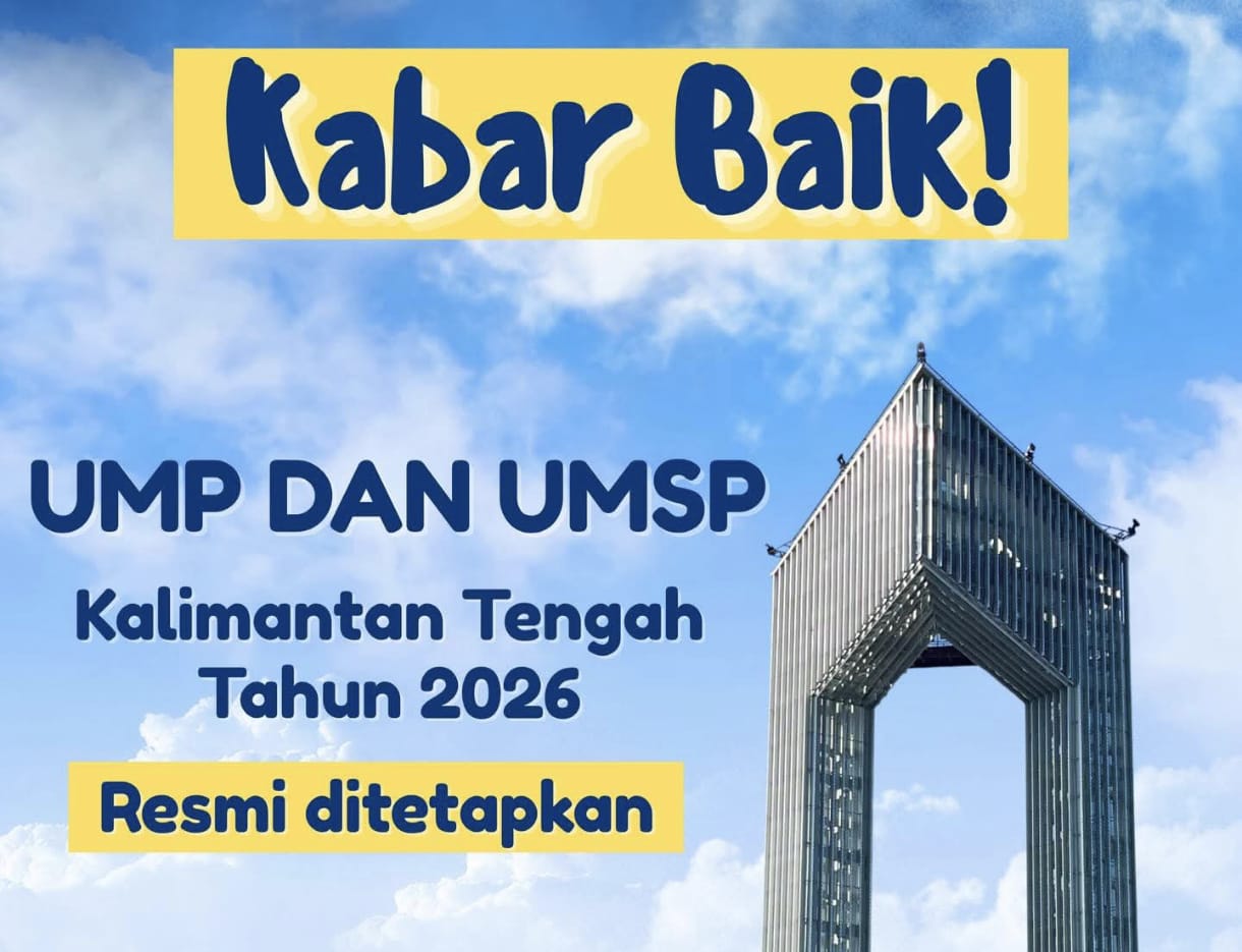 BIMARAYA, PALANGKA RAYA – Pemerintah Provinsi Kalimantan Tengah secara resmi menetapkan kenaikan Upah Minimum Provinsi (UMP) dan Upah Minimum Sektoral Provinsi (UMSP) Tahun 2026 sebesar 6,12 persen. Penetapan tersebut tertuang dalam Surat Keputusan Gubernur Kalimantan Tengah Nomor 188.44/477/2025.