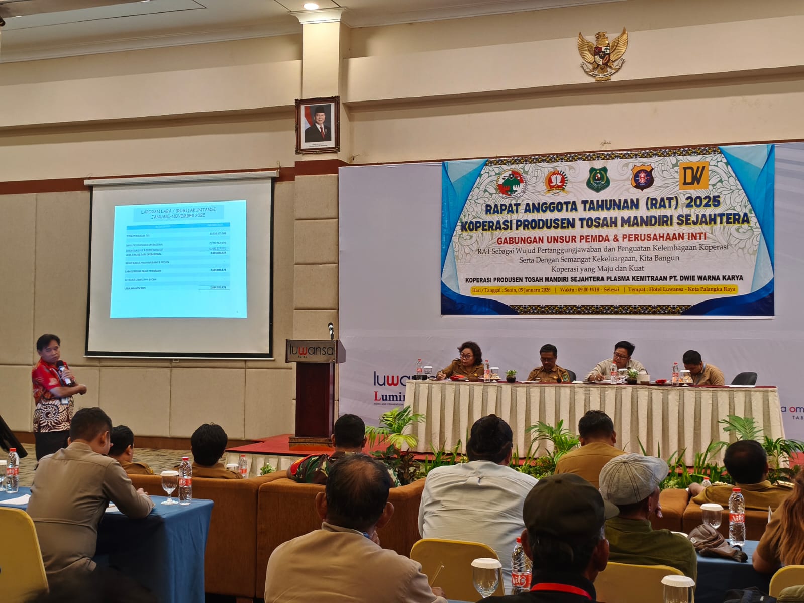 BIMARAYA, PALANGKA RAYA – Koperasi Produsen Tosah Mandiri Sejahtera menggelar Rapat Anggota Tahunan (RAT) Tahun Buku 2025 sebagai bentuk pertanggungjawaban pengurus kepada seluruh anggota sekaligus momentum penguatan kelembagaan koperasi. Kegiatan tersebut berlangsung pada Senin (5/1/2026) di Hotel Luwansa, Kota Palangka Raya.