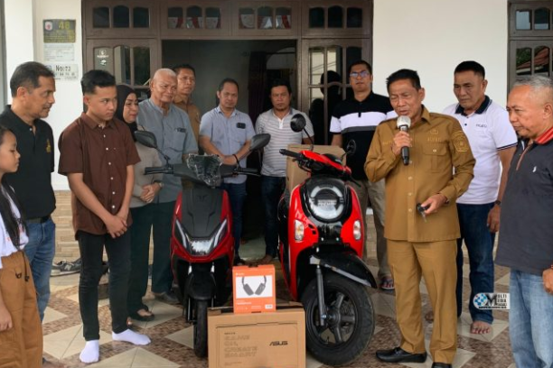 BIMARAYA, MURUNG RAYA – Bupati Murung Raya, Heriyus, menyerahkan bonus kepada atlet catur berprestasi berupa dua unit sepeda motor dan satu unit laptop, Senin (12/1/2026). Penyerahan bonus tersebut dilaksanakan di kantor Sekretariat DPC Partai Gerindra Kabupaten Murung Raya.