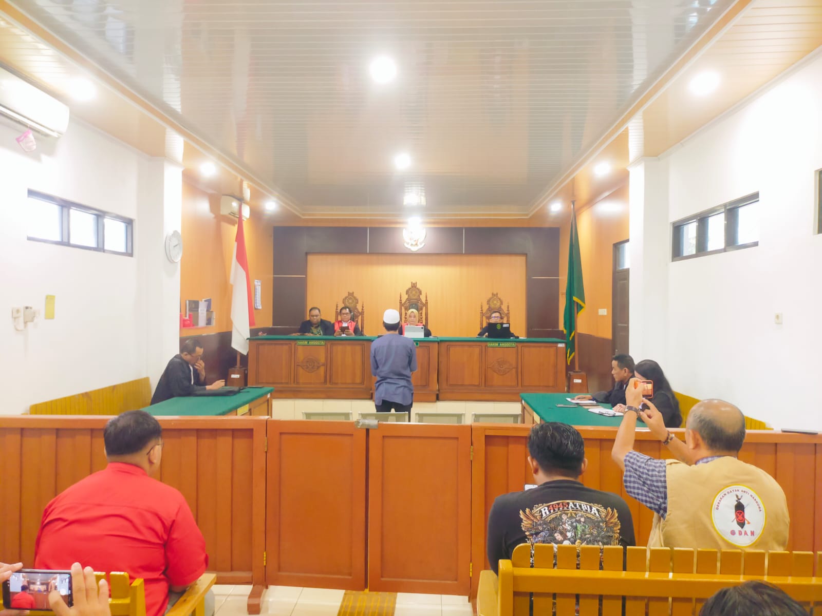 Keterangan Foto : Gembong narkoba puntun Saleh saat mendengarkan pembacaan putusan oleh majelis hakim (Foto : PATHUR/Borneonews.co.id)