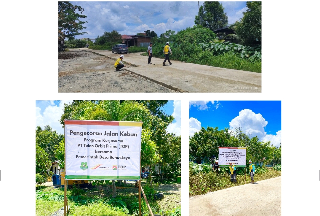 Buhut Jaya, Kapuas — Di tengah hamparan kebun yang menjadi denyut nadi ekonomi warga, akses jalan kerap menjadi penentu antara produktivitas dan keterbatasan. Menyadari hal tersebut, PT Telen Orbit Prima (TOP) melalui program Corporate Social Responsibility (CSR) mengambil langkah konkret dengan menyalurkan donasi infrastruktur berupa perbaikan jalan kebun di Desa Buhut Jaya.